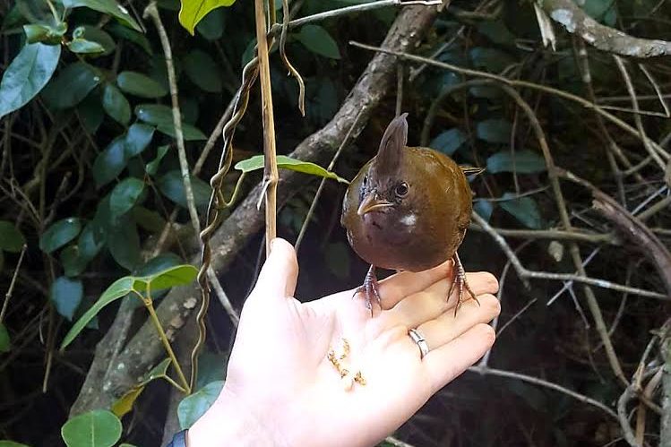 この辺りにいる鳥はすっかり餌付けされていて、人間の姿を見つけるとすぐに寄ってきます😁